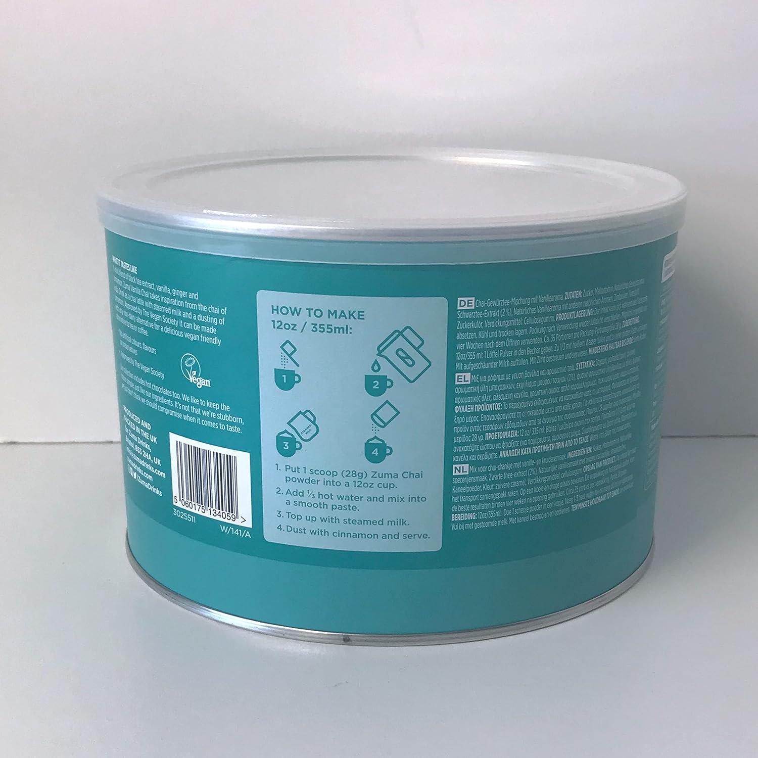 Zuma Vanilla Chai Powder 1 x 1kg Tin - Smooth & Sweet Blend, Vegan-Friendly Chai