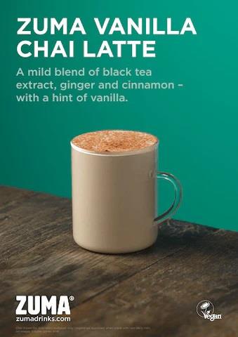 Zuma Vanilla Chai Powder is a smooth, aromatic blend crafted with black tea extract, ginger, cinnamon, and a hint of vanilla for a delicately spiced chai experience. Inspired by traditional Indian chai, our mix delivers a comforting balance of warmth and sweetness. Our premium formula is free from artificial colours, flavours, and preservatives, ensuring pure, high-quality taste. Approved by The Vegan Society, our vanilla chai powder is suitable for a wide range of dietary preferences. Whether enjoyed as a classic chai latte with steamed milk or blended into creative recipes, our Zuma Vanilla Chai Powder offers a soothing, flavourful experience, perfect for cafés, home indulgence, or professional baristas.