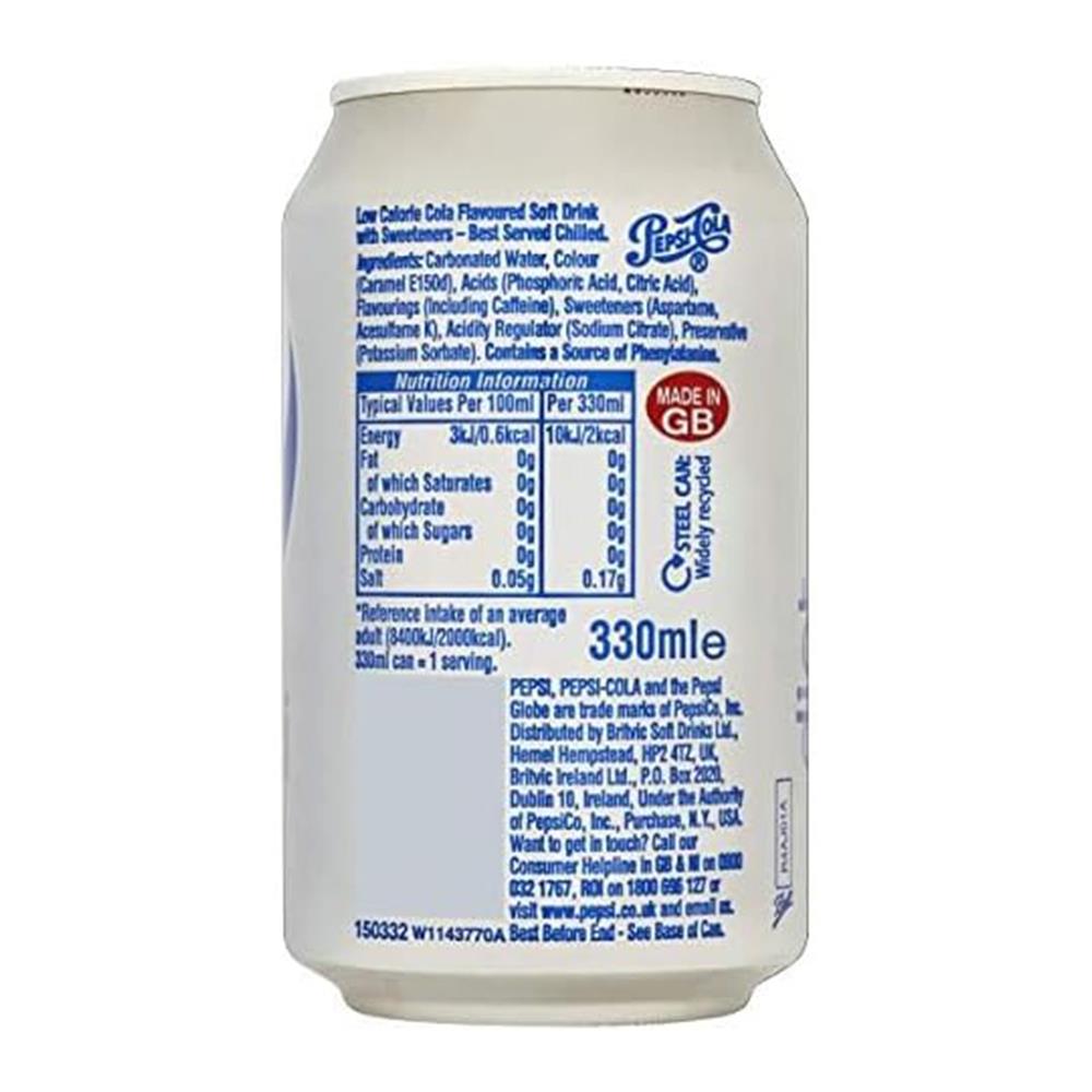 Diet Pepsi offers the classic cola flavor you love, without the sugar or calories. Each 330ml can delivers a light, crisp taste that's perfect for any occasion. Whether you're watching your calorie intake or simply prefer a lighter beverage, Diet Pepsi is a refreshing choice. Available in convenient 24-pack options, it's ideal for stocking up at home, the office, or for events. Best served chilled, this zero-sugar cola is both invigorating and satisfying