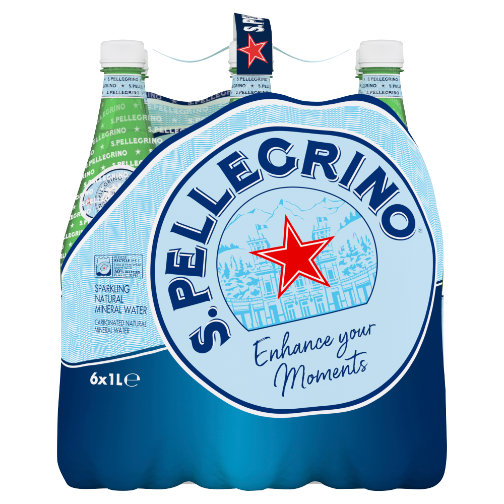San Pellegrino Sparkling Mineral Water 6 x 1L Bottles - Italian Crisp and Refreshing Water