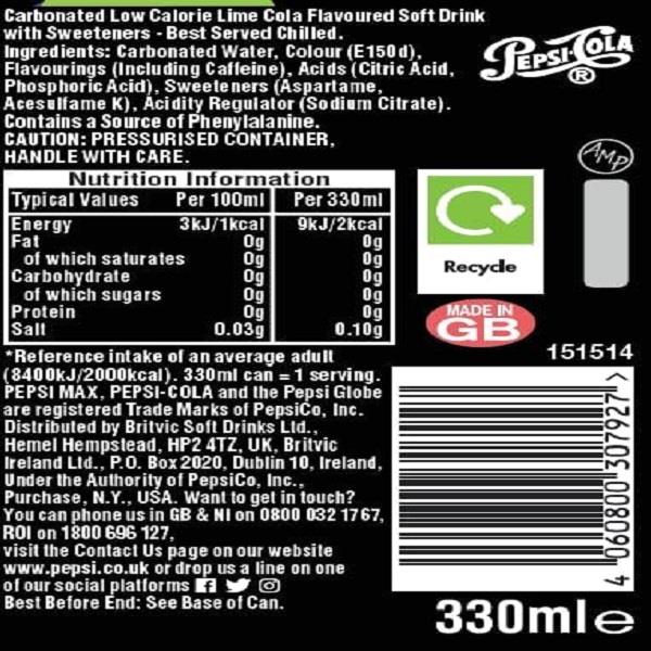 - Zero Sugar: Catering to health-conscious consumers, Pepsi Max Lime is a sugar-free beverage, allowing individuals to enjoy the full-bodied taste without the added sugar content.