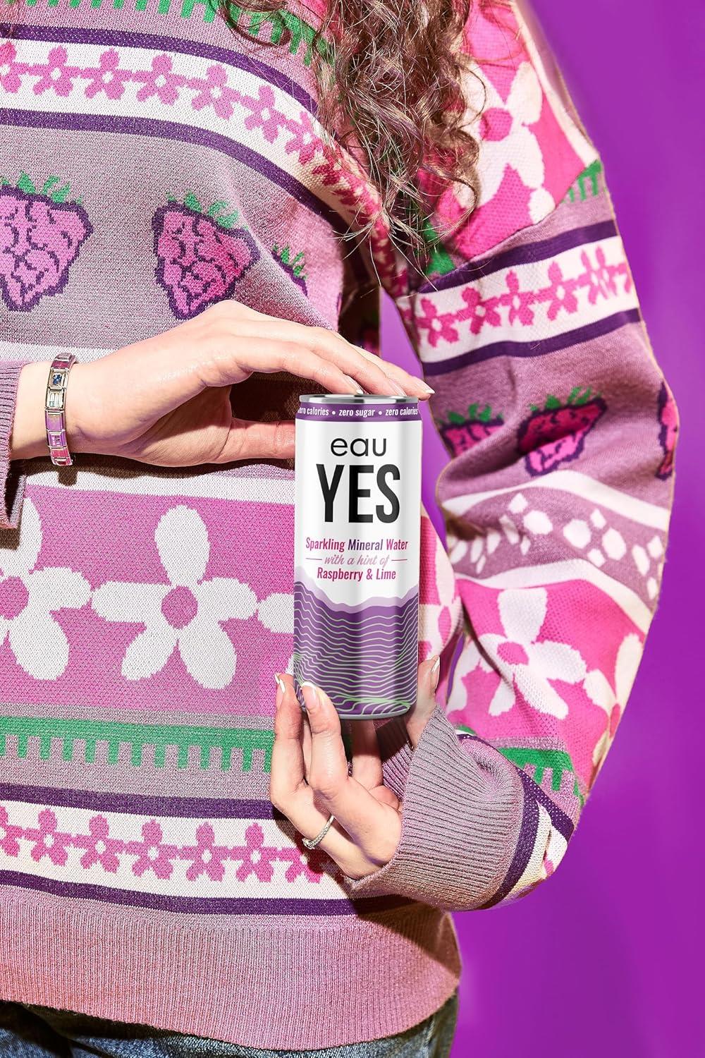 EauYes RASPBERRY & LIME Sparkling Mineral Water 330ml Can | Zero Sugar, Calories & Sweetners
