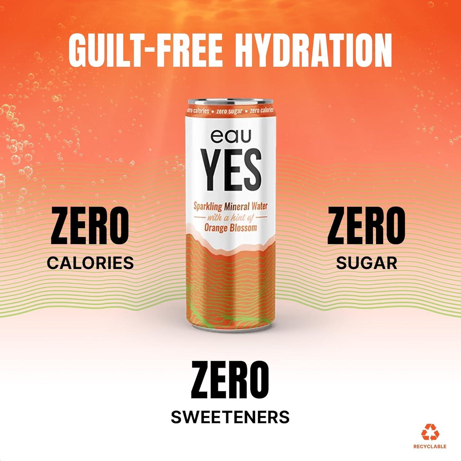 EauYes ORANGE BLOSSOM Sparkling Mineral Water 330ml Can | Zero Sugar, Calories & Sweetners