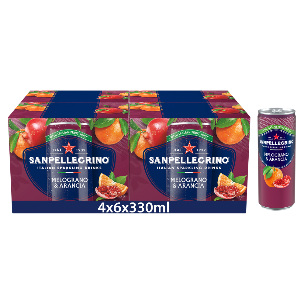 San Pellegrino Pomegranate & Orange (Melograno & Arancia) Drink 24 x 330ml Cans