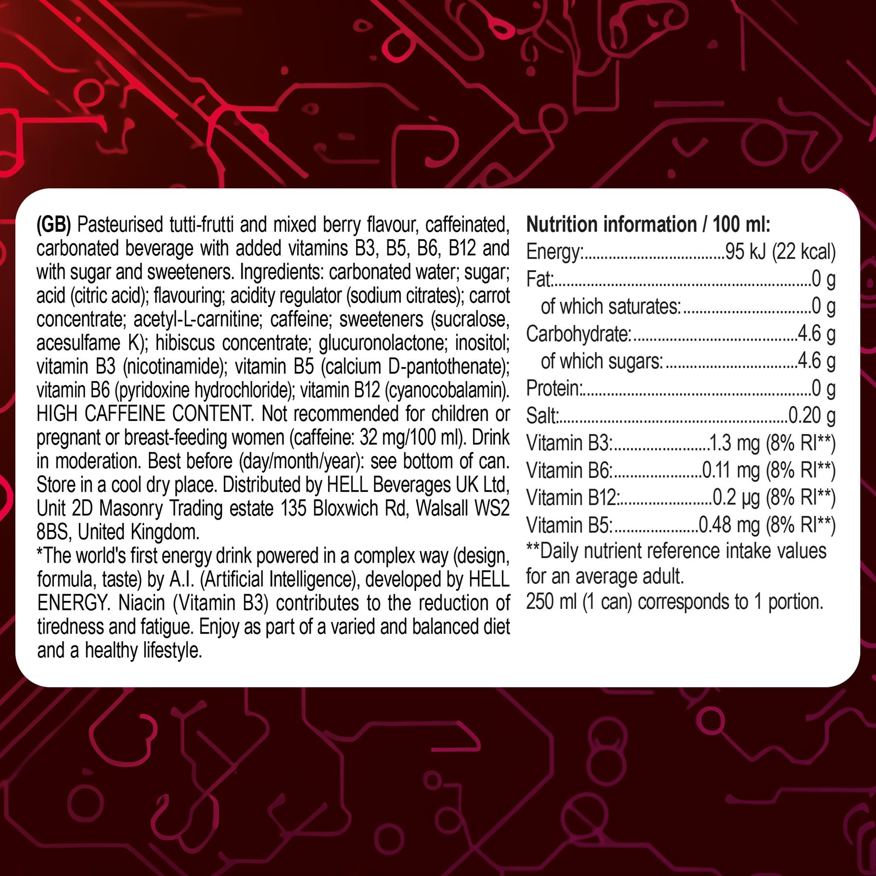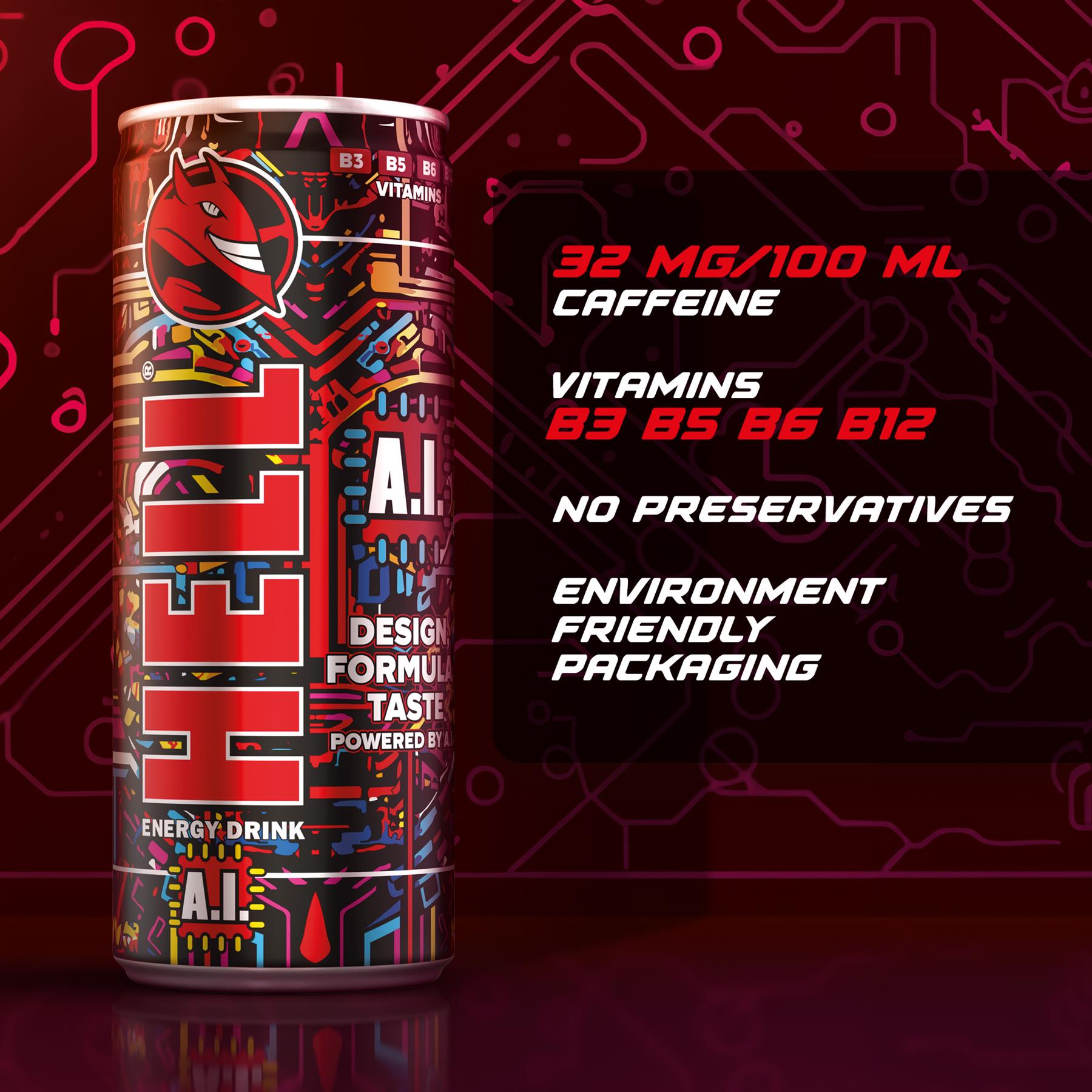 Features:- 24 x 250ml cans of Hell Energy Drink A.I