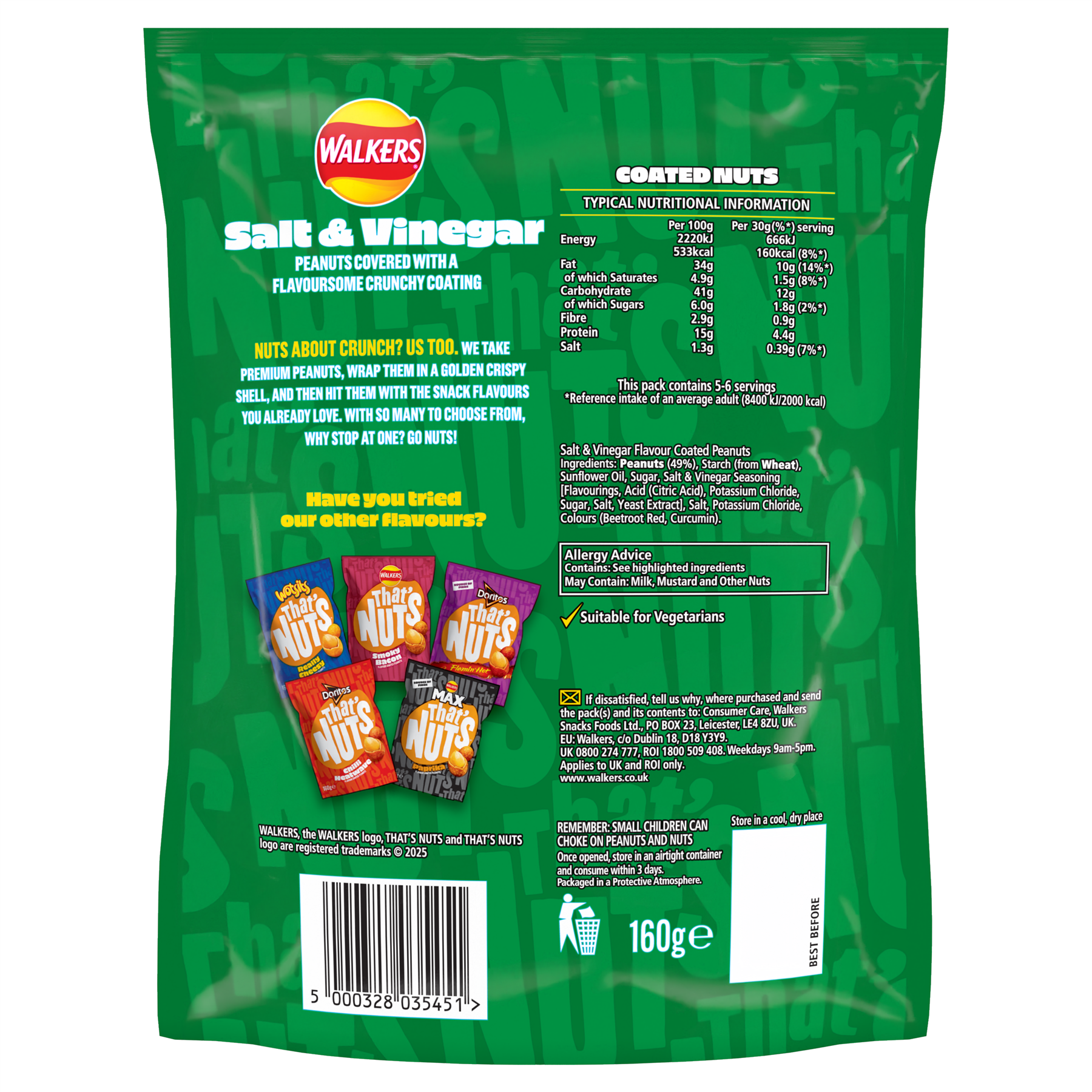 Walkers Thats Nuts Salt And Vinegar 8 x 160g Packs Bold Crunchy Coated Peanuts