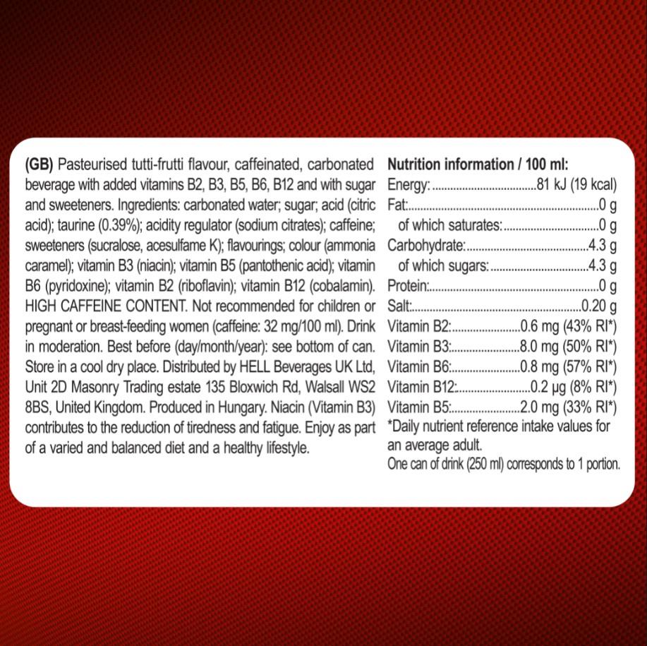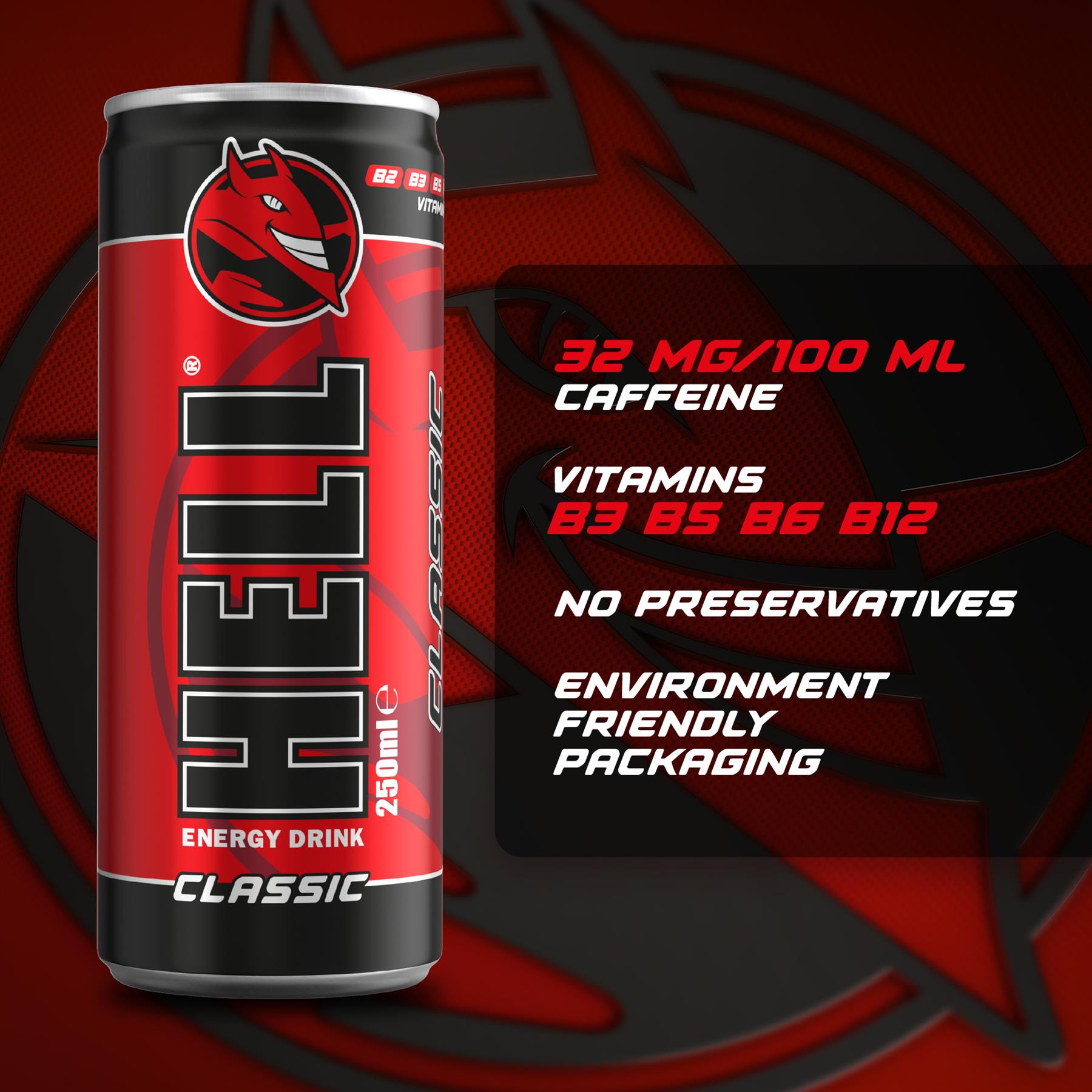 Features:- 24 x 250ml cans of Hell Energy Drink Classic Flavour