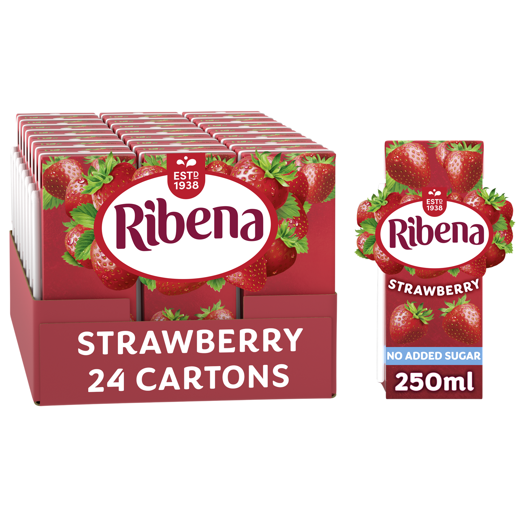 Ribena Strawberry Juice 24 x 250ml PMP Cartons Low-Calorie Vitamin C Drink