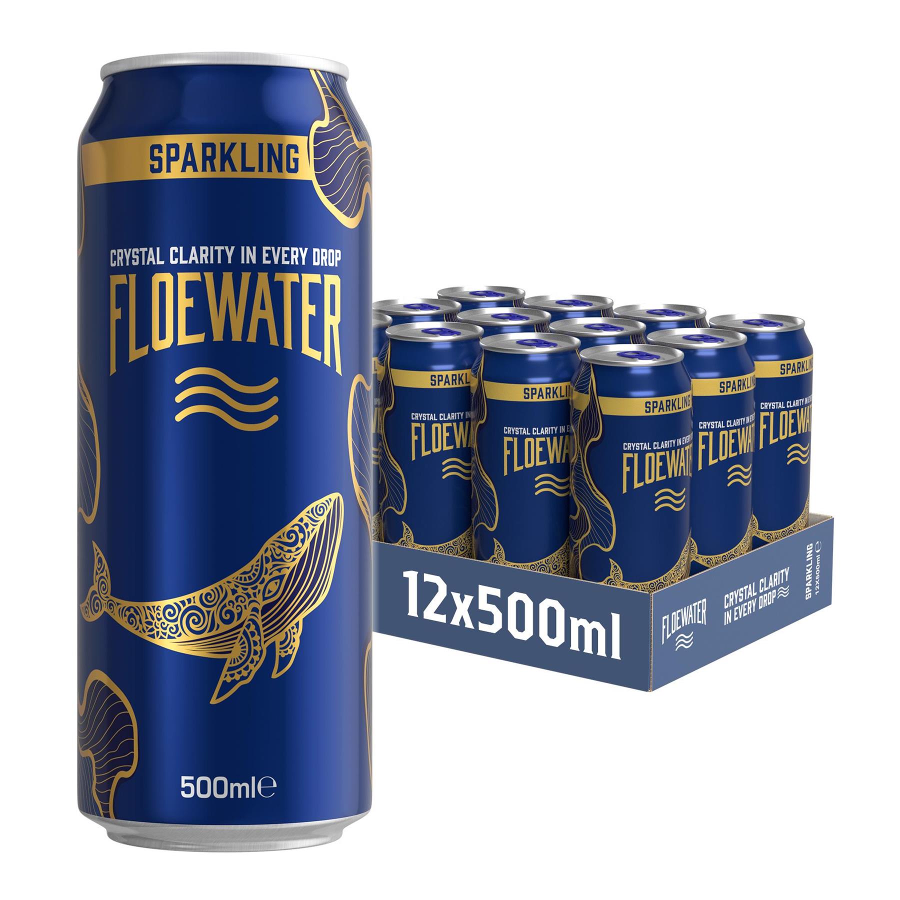 Floewater Sparkling Water 12 x 500ml Cans - Vegan & Vegetarian Friendly, Refreshing Natural Wate