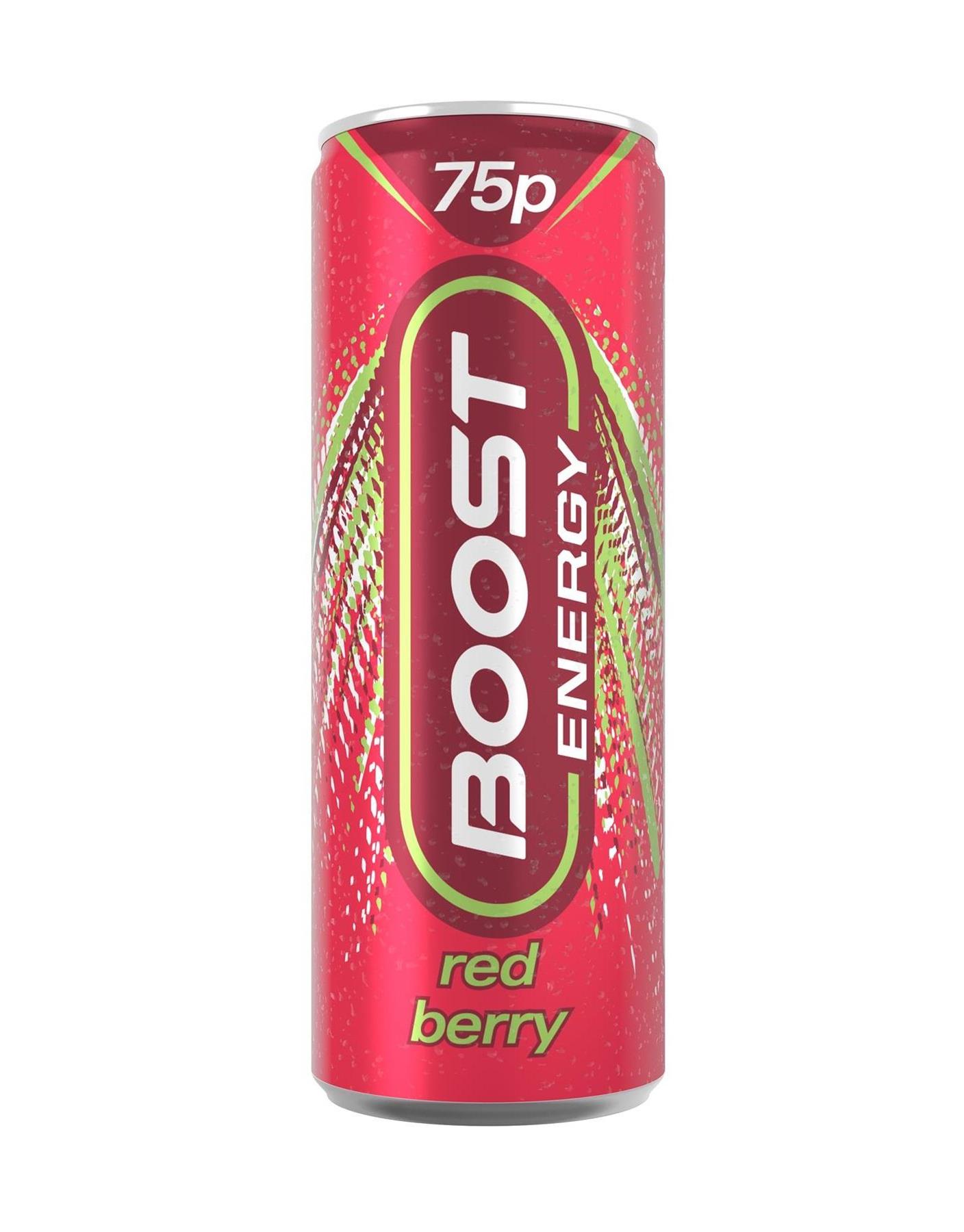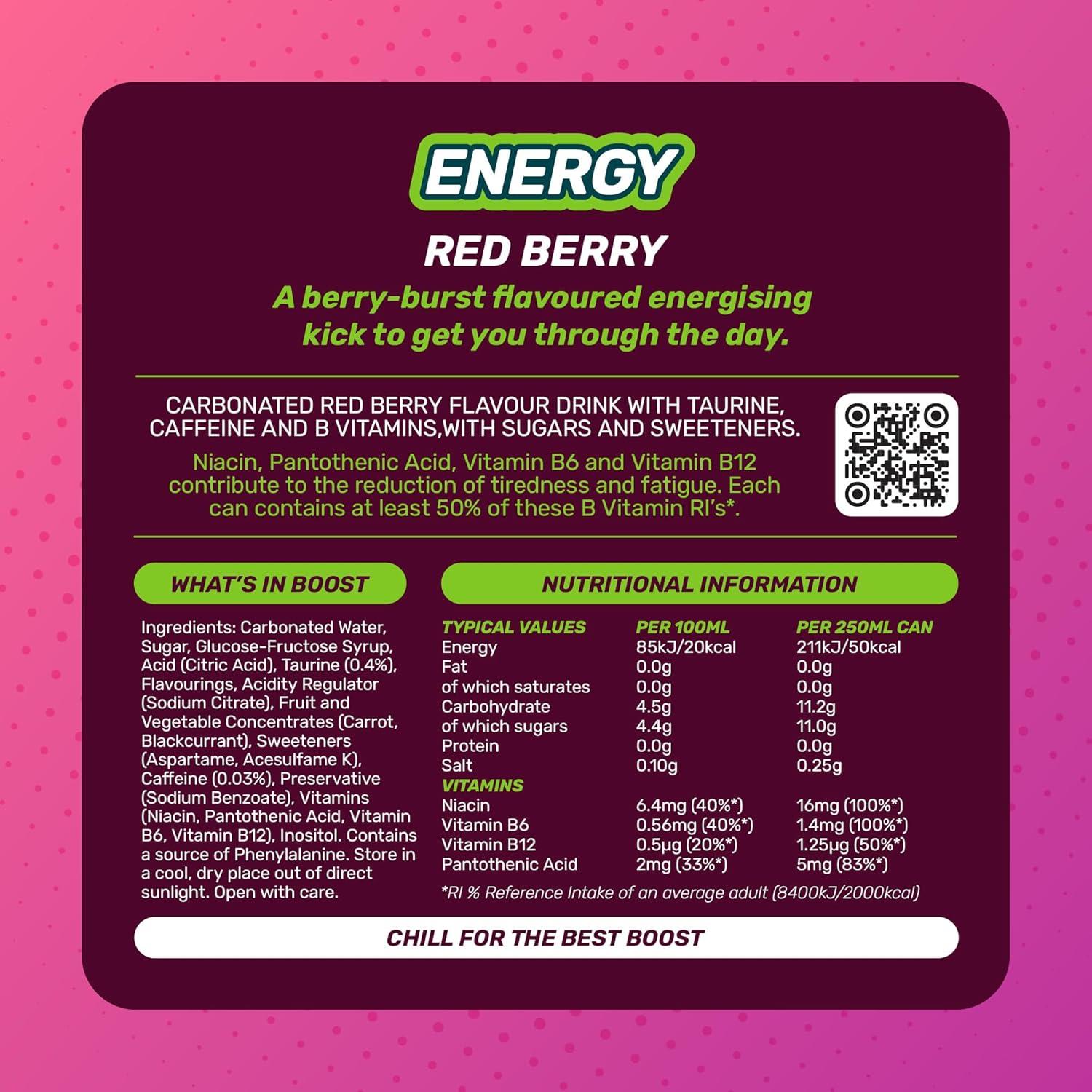Boost Energy Red Berry Cans 24 x 250ml PMP – Sparkling Energy Drink - Caffeine & B-Vitamin
