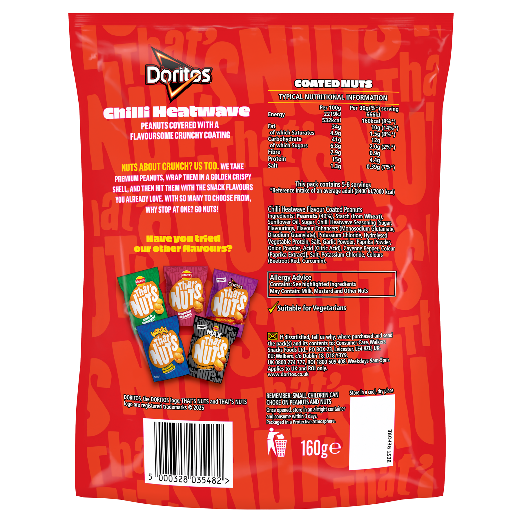 Doritos Thats Nuts Chilli Heatwave 8 x 160g Packs Crunchy Coated Peanuts Vegetarian Snack