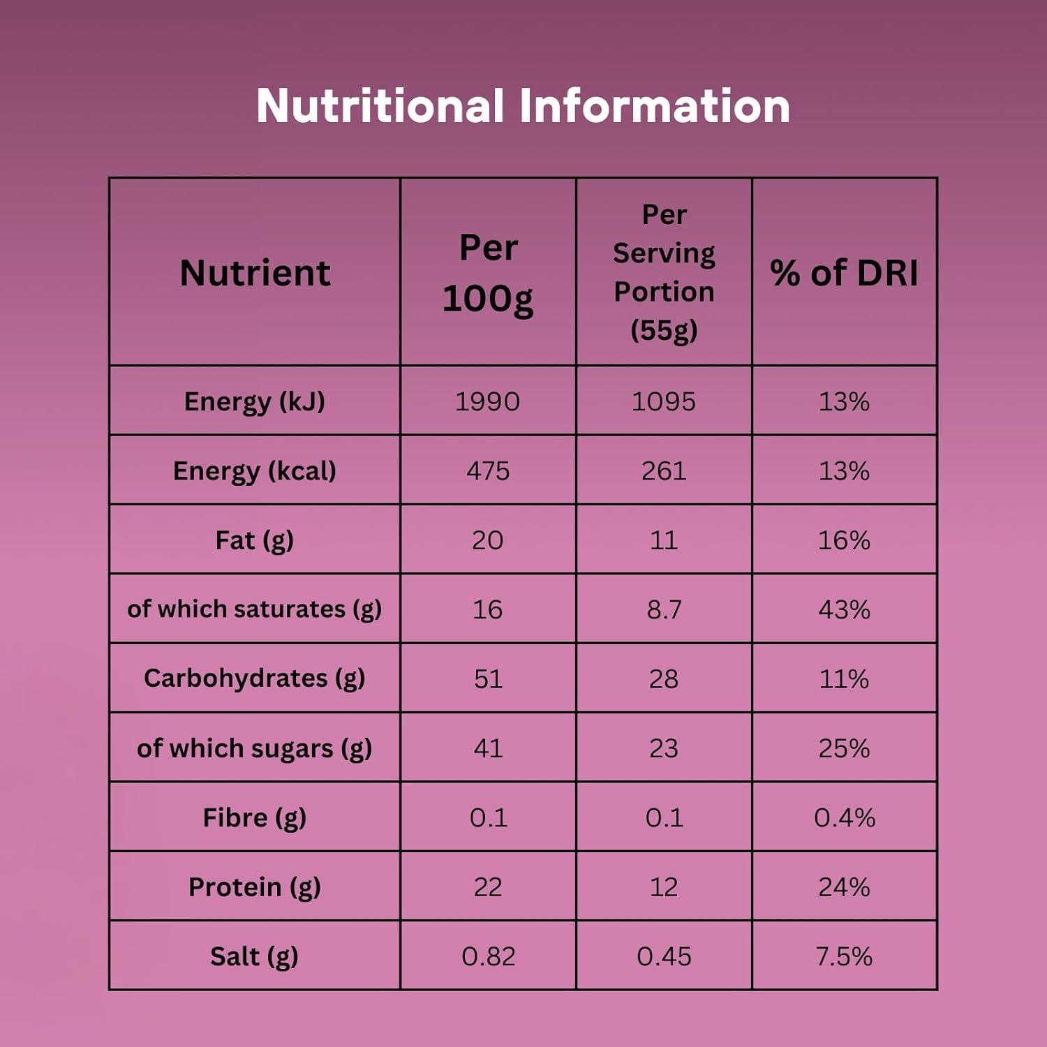 Allergies:Contains milk and soya. May contain traces of nuts, peanuts, and gluten.
