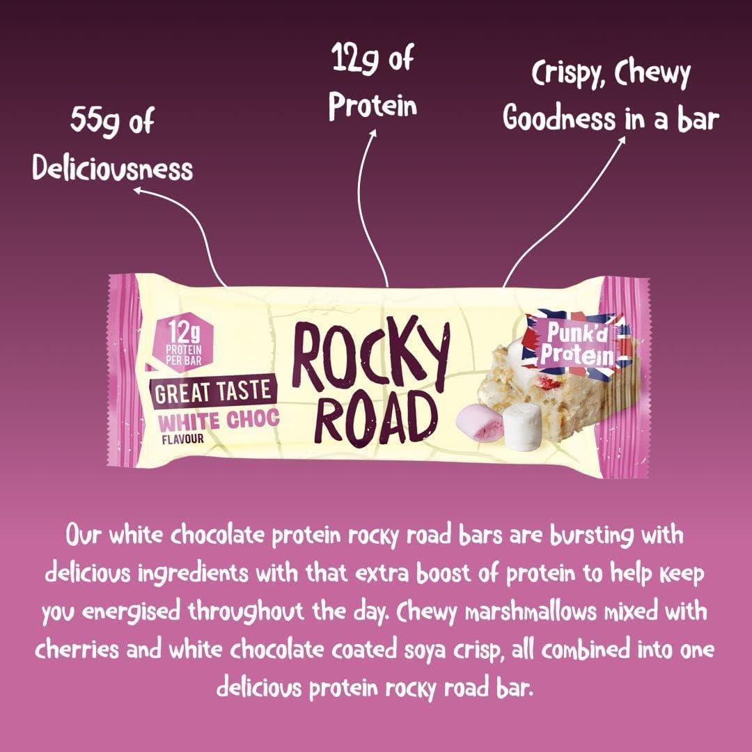 Punkd Protein White Choc Rocky Road 12 x 55g – 12g Protein With Cherry & Marshmallow Bites