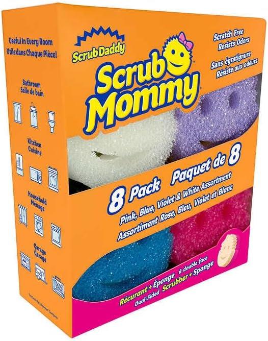 Make cleaning easier with the Scrub Mommy Dual Sided Sponge And Scrubber 8 Pack. Each pack includes 4 vibrant colors with 2 pink, 2 blue, 2 violet, and 2 white sponges. Featuring Resofoam for gentle cleaning and FlexTexture for firm scrubbing, these sponges deliver superior absorption and suds. They are scratch free, safe on non stick and stainless steel, odor resistant, and ergonomically designed for effortless household cleaning.