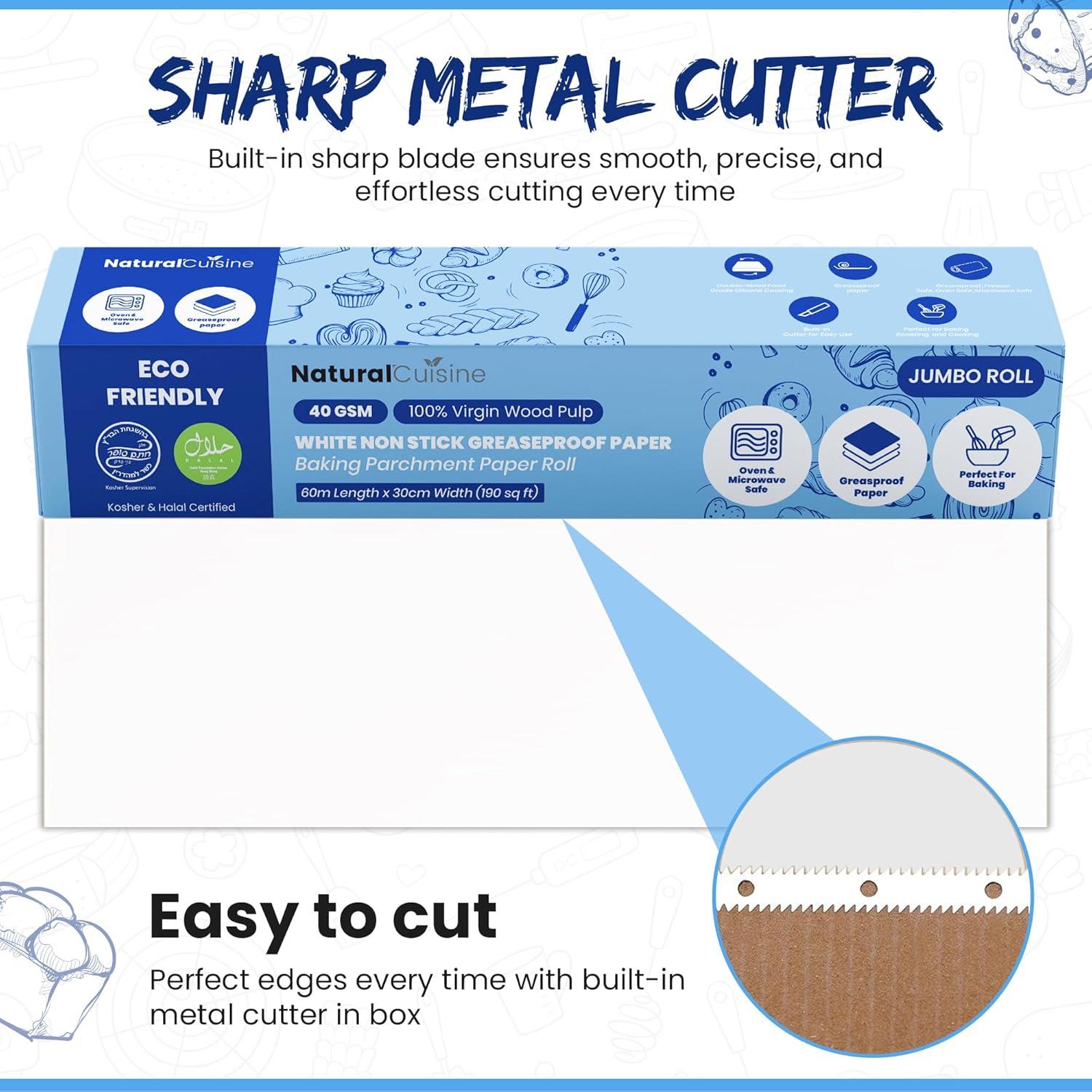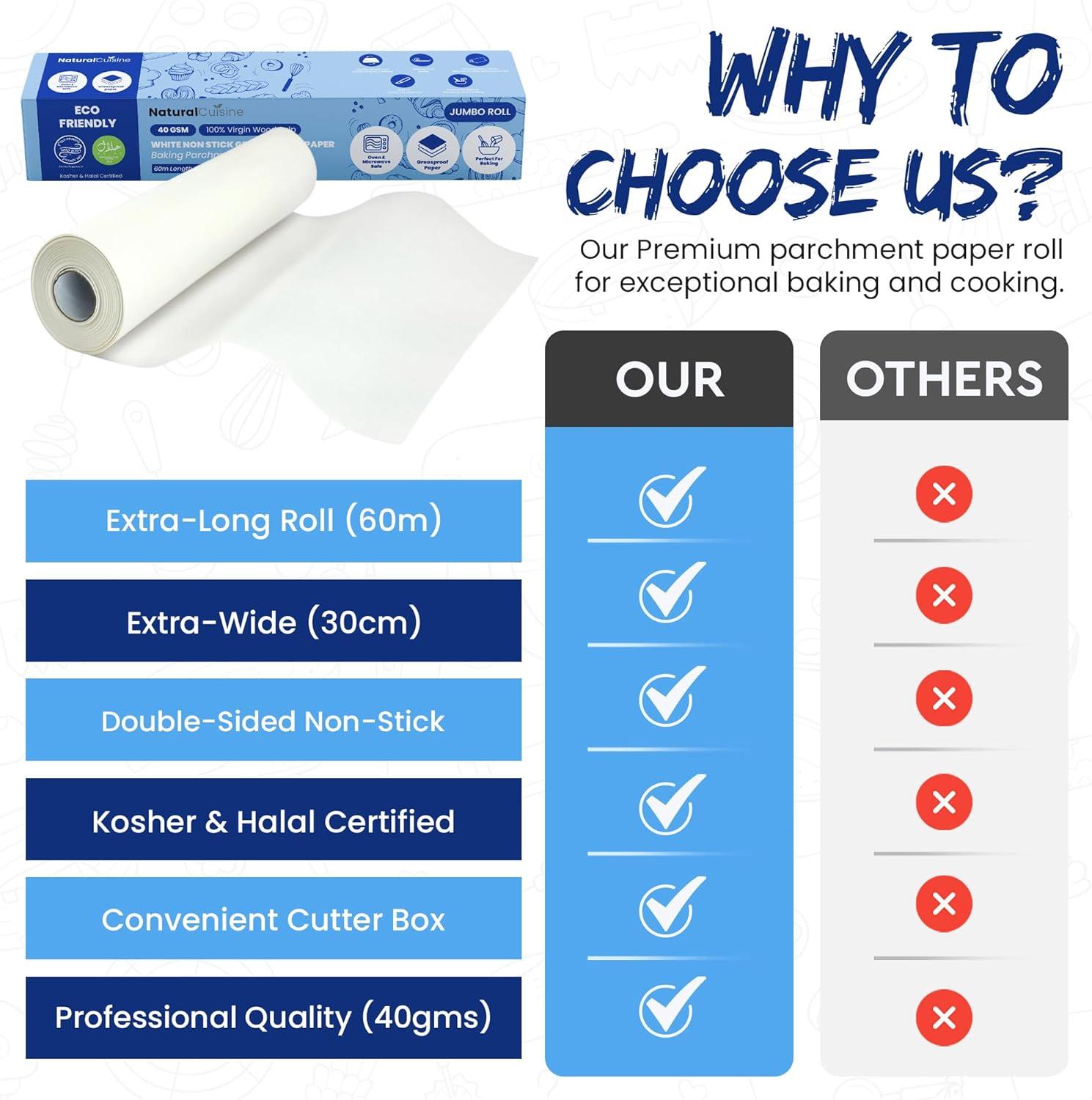 Natural Cuisine Baking Parchment Paper on Roll, White, 40 gsm, non Stick, 60m x 30cm